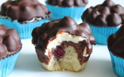 Donauwellen Muffins mit fruchtiger Kirschwelle